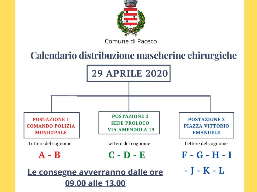 E’ questa la linea seguita dall’Amministrazione Comunale di Paceco per distribuire alle famiglie del territorio le mascherine chirurgiche ricevute dalla Protezione Civile.