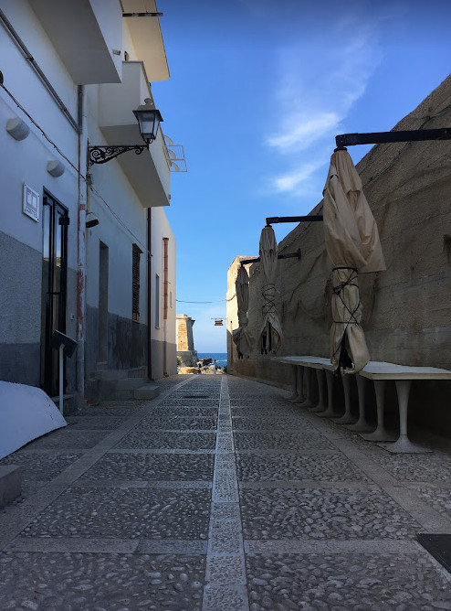 Vicoli stretti che sanno di vita. Case dirimpettaie apparentemente vuote ma sempre vigili e attente restano abbagliate di luce e corrose dalla salsedine.